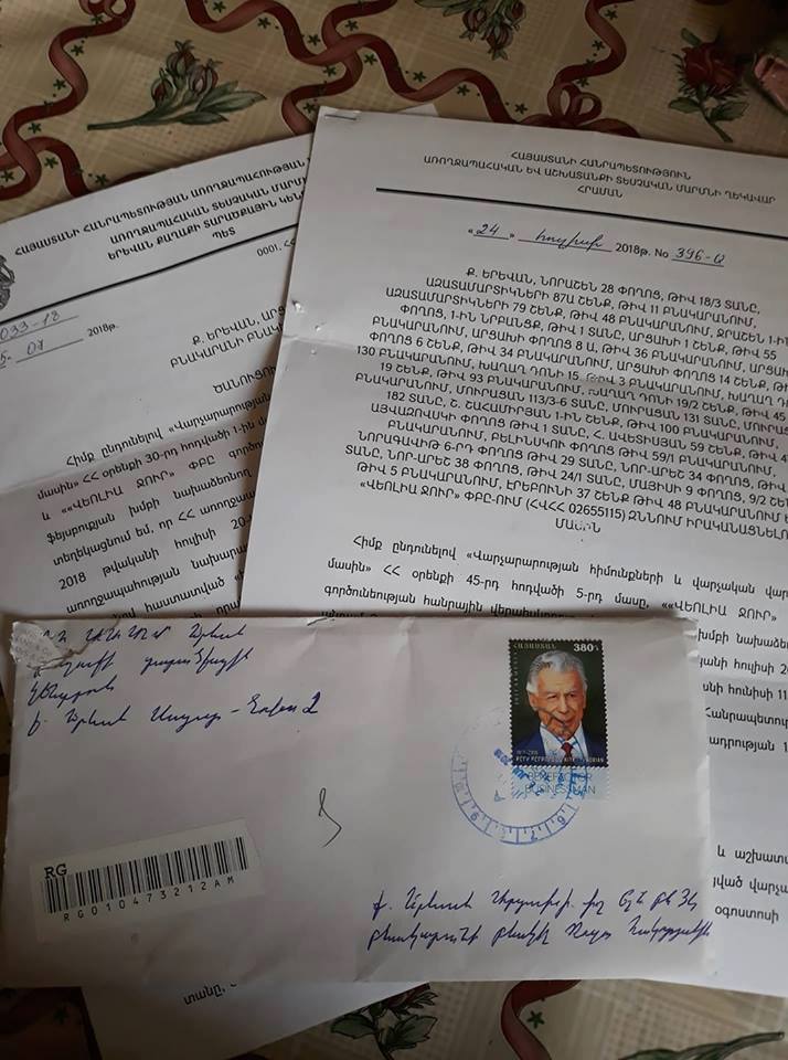 Վերջին դիմումը ֆեյսբուքյան խմբի նախաձեռնող անդամ Դավիթ Գասպարյանը հունվարի 31-ի ամսաթվով ուղղել է ՀՀ ՀԾԿՀ աշխատակազմին, Ջրային կոմիտեի աշխատակազմին, ՀՀ փոխվարչապետ Տիգրան Ավինյանի աշխատակազմին՝ հիշեցնելով, որ ՀԾԿՀ 30.11.2016թ. թիվ 378-Ն որոշմամբ հաստատված «Խմելու ջրի մատակարարման և ջրահեռացման (կեղտաջրերի մաքրման) ծառայությունների մատուցման» (այսուհետ՝ ՋՄՕԿ 71) մասին կանոնների համաձայն, մատակարարը պարտավոր է վթարային ընդհատման օրվա, սկզբի ժամի և ջրամատակարարման վերականգնման կանխատեսվող ժամի մասին հնարավորինս սեղմ ժամկետում հեռուստատեսությամբ, գրավոր, էլեկտրոնային եղանակով, հեռախոսազանգի միջոցով կամ անհատապես ծանուցման այլ եղանակով իրազեկել բաժանորդին (https://www.arlis.am/DocumentView.aspx?docid=123756): Դիմումը նա հրապարակել է իր կողմից կառավարվող էջում։