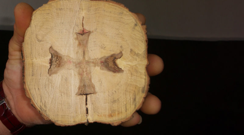 «Լավաշները թոնրից դուրս են գալիս Քրիստոսի դիմապատկերով» վերտառությամբ LIVEmews.am–ի երեկվա հրապարակմամբ մեր ընթերցողներին տեղեկացրել էինք Երևանին մոտակա գյուղերից մեկի բնակչի թոնրատանը թխվող լավաշների մասին, որոնց վրա, ինչպես Քրիստոսի դիմապատկերն առաջինը նկատած ռեժիսոր Արթուր Վարդանյանն է ասել, «…հստակ պատկերված է մի դեմք, որը մինչ այժմ մարդկությունը տեսել է միայն հայտնի դաստառակին»: Միաժամանակ նշել էինք մեկ այլ հրաշքի մասին, որի հետքերով ժամանակին տողերիս հեղինակը գնացել է անձամբ: Կտրել էին ծառը ու ծառի մեջ հայտնաբերել հստակ արտահայտված խաչապատկեր: