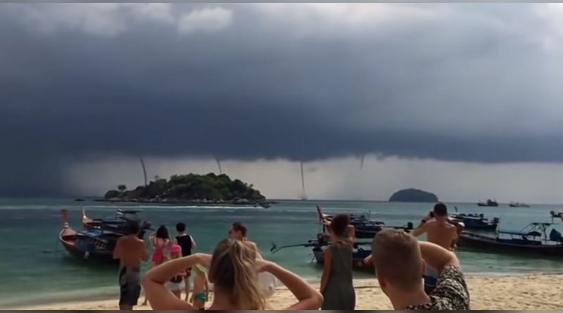 Թաիլանդում հանգստացողները լրջորեն վախեցել են միաժամանակ հայտնված ջրային չորս մրրկասյուներից (տեսանյութեր)
