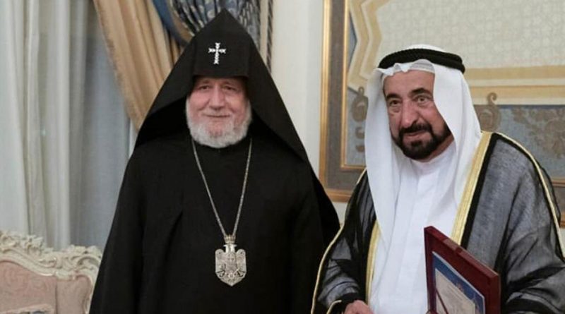«Հատկապես Հայոց ցեղասպանությունից հետո հարյուր հազարավոր հայ գաղթականներ իրենց ապահով հանգրվանը գտան արաբական աշխարհի հյուրընկալ երկրներում` ձևավորելով խաղաղ համակեցության ու համագործակցության իրական և կենսական օրինակ: Այդպիսի վկայություններով են զարդարված նաև Շարժայում հայ և արաբ ժողովուրդների զավակների կյանքը, միասնական մասնակցությունը երկրի առաջընթացին, եղբայրական բարի հարաբերությունները: Մենք Մեր ժողովրդի զավակների երախտագիտությունն ենք վերստին հայտնում Արաբական Միացյալ Էմիրությունների մեծարգո նախագահին և Շարժայի Էմիրության կառավարչին Նորին Գերազանցություն Շեյխ Սուլթան բին Մուհամեդ Ալ Քասիմիին, որ ժողովուրդների միջև բարեկամության ամրապնդման ոգով և ամենայն բարյացակամությամբ զորակցություն են բերում տեղի քրիստոնեական համայնքներին: Առանձնակիորեն ցանկանում ենք անդրադառնալ, որ Շեյխ Սուլթան բին Մուհամեդ Ալ Քասիմիի մարդասիրական մեծահոգի վերաբերմունքի շնորհիվ Շարժայի հայ համայնքն ունեցավ նաև իր աղոթավայրը՝ կազմակերպելու համար ազգային-հոգևոր իր կյանքը: Գոհունակությամբ ու շնորհակալությամբ ենք հիշում դեռևս 2006 թվականին Նորին Գերազանցություն Շեյխ Սուլթան բին Մուհամմադ Ալ Քասիմիի կողմից Հայաստան կատարված այցի շրջանակներում առնված աստվածահաճո որոշումը` վերակառուցելու Հայաստանի նշանավոր վանական համալիրներից Հաղարծնի վանքը` իբրև հանդուրժողականության և կրոնական-մշակութային արժեքների հանդեպ բացառիկ վերաբերմունքի օրինակելի դրսևորում: Մեր աղոթքներն ու գնահատանքն ենք բերում Նորին Գերազանցությանը մարդասիրության և բարեկամության իր ազնիվ ոգու համար: