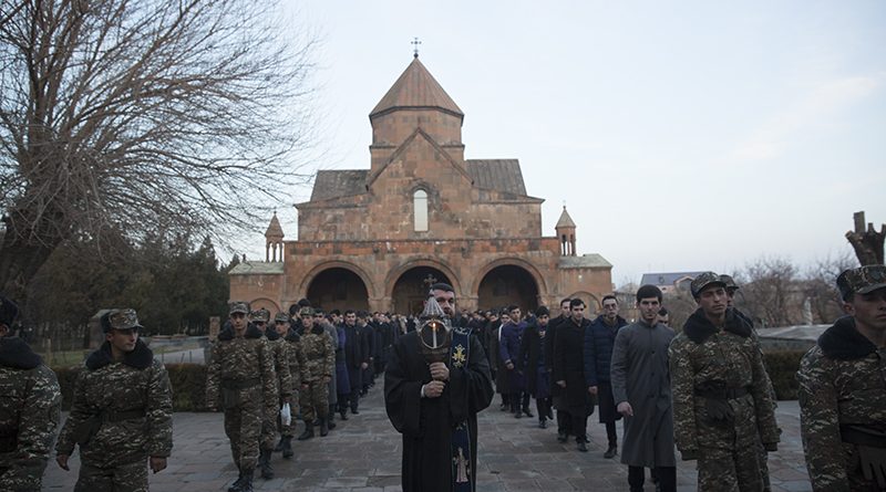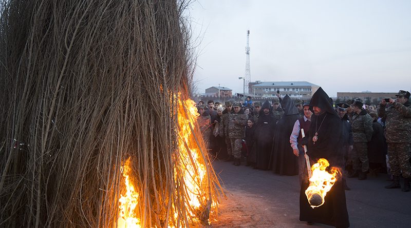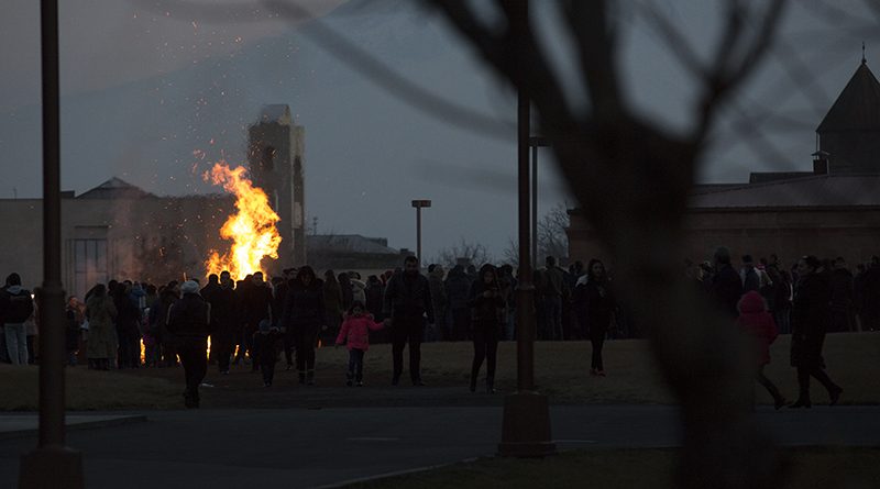 Խարույկի շուրջ Մայր Աթոռ Սուրբ Էջմիածնի Գևորգյան հոգևոր ճեմարանի սաները հանդես եկան հոգևոր և ազգային երգերի կատարումներով: