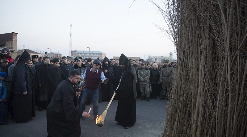 Արարողությունից հետո եկեղեցականաց թափորն ուղղվեց դեպի Մայր Աթոռի միաբանական շենքի շրջափակ, ուր, ներկայությամբ բազում հավատացյալ հայորդիների, ձեռամբ Մայր Աթոռի Լուսարարապետ Գերաշնորհ Տ. Հովնան եպիսկոպոս Հակոբյանի, վառվեց Տեառնընդառաջի խարույկը: