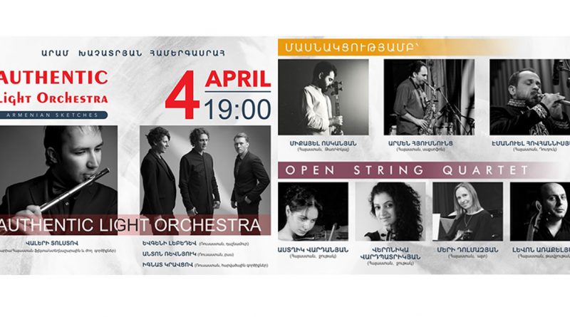 Ապրիլի 4-ին «Արամ Խաչատրյան» համերգասրահում ելույթ կունենա հայտնի «Authentic Light Orchestra» խումբը` «Հայկական Էսքիզներ» («Armenian Sketches») ծրագրով։ Համերգի կազմակերպիչների տեղեկացմամբ, երևանյան համերգին կմասնակցեն դաշնակահար Եվգենի Լեբեդևը, բասահար Անտոն Ռևնյուկը և հարվածային գործիքներով նվագող Իգնատ Կրավցովը Ռուսաստանից, ինչպես նաև՝ Միքայել Ոսկանյանը (թառ/վոկալ), Արմեն Հյուսնունցը (սաքսոֆոն), «Open String» քառյակը։ Համերգի հատուկ հյուրն է դուդուկահար Էմանուել Հովհաննիսյանը։