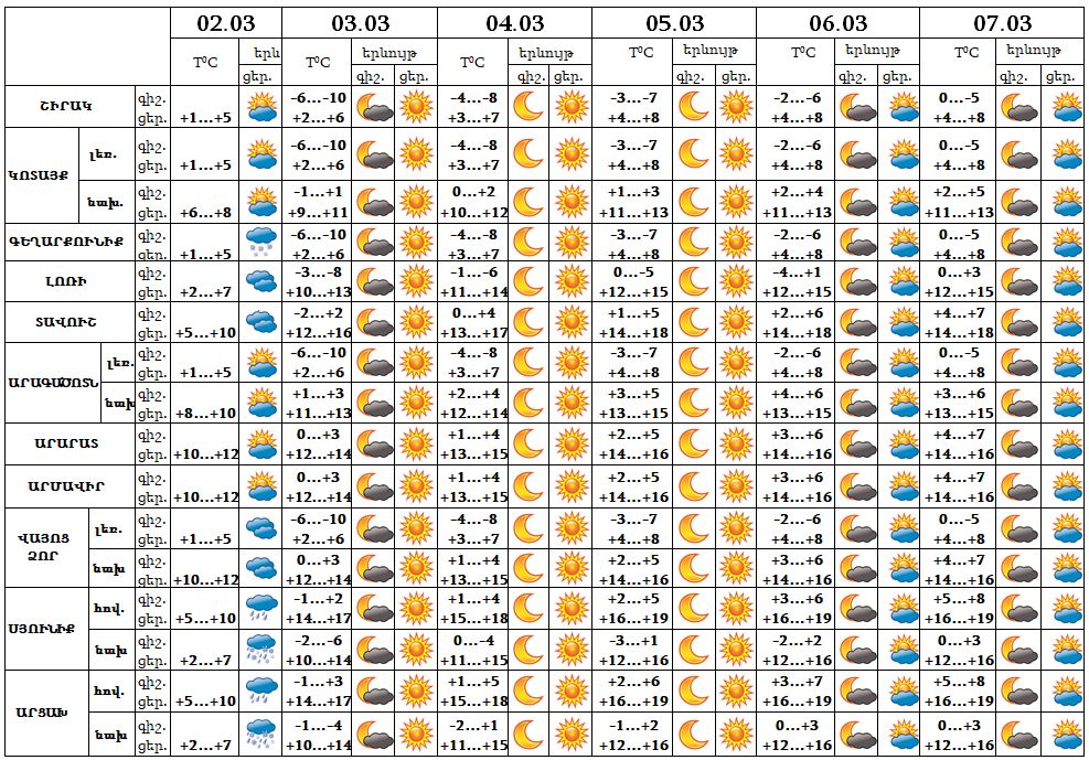 Օդի ջերմաստիճանը 3-6-ն աստիճանաբար կբարձրանա 4-6 աստիճանով: