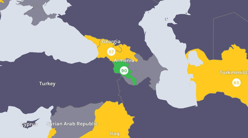 Հայաստանի հարևան երկրներից ներկայացված է Վրաստանի ցուցանիշը, որն ունի 57 միավոր: 90 և ավելի ցուցանիշներ ունեցող երկրներից են Կանադան, Ճապոնիան, Ավստրալիան, Արաբական Միացյալ Էմիրությունները: