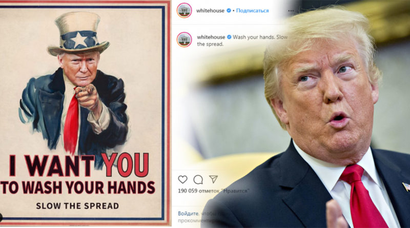 ԱՄՆ նախագահ Դոնալդ Թրամփը՝ քեռի Սեմի կերպարանքով հորդորել է ԱՄՆ քաղաքացիներին լվանալ ձեռքերը` կանխելու համար կորոնավիրուսային վարակը: Պետության ղեկավարի պաստառը հրապարակվել է հինգշաբթի, մարտի 19-ին, Սպիտակ տան Instagram-ի պաշտոնական էջում: