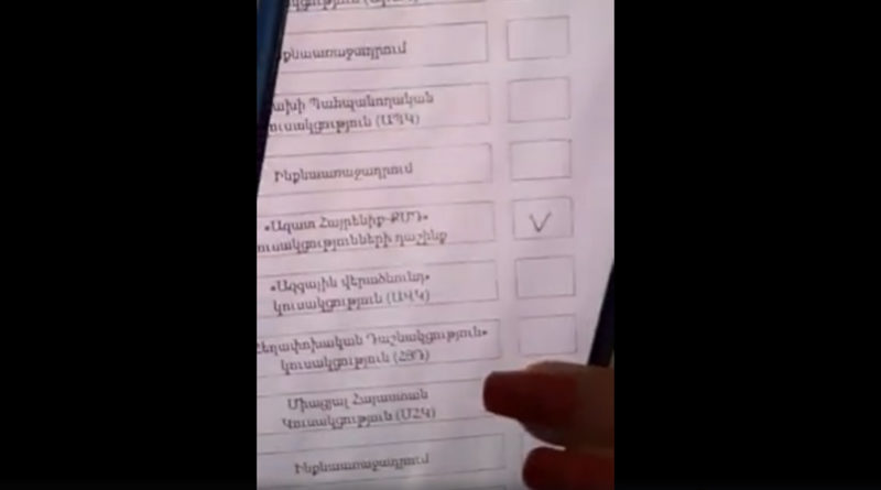 Արցախից լուրեր ենք ստանում, որ ԱՀ նախագահի թեկնածու Արայիկ Հարությունյանը գումար է բաժանել ընտրողներին և նրանցից պահանջել՝ քվեարկությունից հետո անմիջապես նկարել քվեաթերթիկը, որպես ապացույց այն բանի, որ գումար վերցրած անձը քվեարկել է իր օգտին: