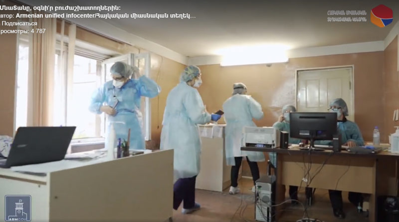 Հայկական միասնական տեղեկատվական կենտրոնը տեսանյութ է հրապարակել, որտեղ երևում է կորոնավիրուսի բուժմամբ զբաղվող բուժաշխատողների արտակարգ ռեժիմով  աշխատանքը: «Կորոնավիրուսի բուժմամբ զբաղվող ԲԿ-ների բուժանձնակազմը աշխատում է արտակարգ ռեժիմով՝ 24 ժամ, առանց հանգստի։