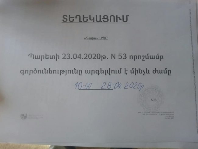 Պարետի որոշմամբ՝ մինչ օրս ժամանակավոր կասեցվել է շուրջ 9 տասնյակ կազմակերպության գործունեություն