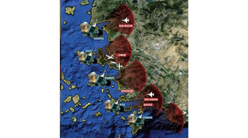 Քարտեզում պատկերված է, թե ինչպես են Էգեյան ծովում հունական կղզիների վրայից հրթիռային համակարգերը թիրախավորել Էգեյան ծովի մերձափնյա Բալըքեսիրի, Իզմիրի, Մուղլայի, Բոդրումի, Դալամանի և Մամարիսի շրջանները։