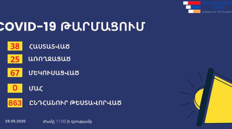 Արցախ տեղեկատվական շտաբի փոխանցմամբ՝ հաստատված դեպքերի թիվը 38 է: Ընդհանուր թեստավորվել է 863 քաղաքացի: