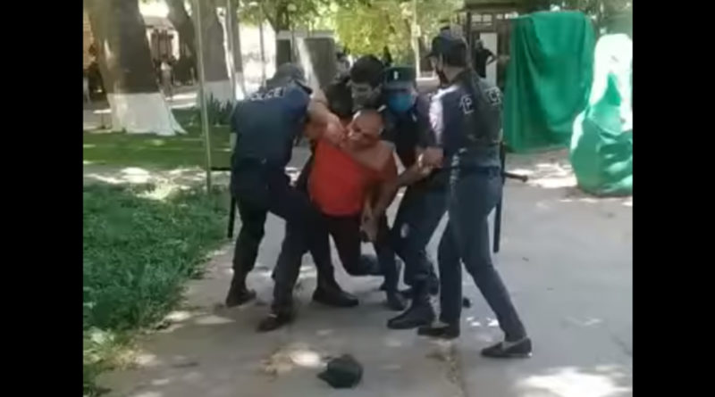 Քաղաքացին տեսանկարահանել է, թե ինչպես են Ոստիկանության աշխատակիցները ուժ կիրառում Երևանի այգիներից մեկում մի քաղաքացու նկատմամբ, ձեռնաշղթաներ հագցնում և բերման ենթարկում՝ դիմակ չկրելու համար:
