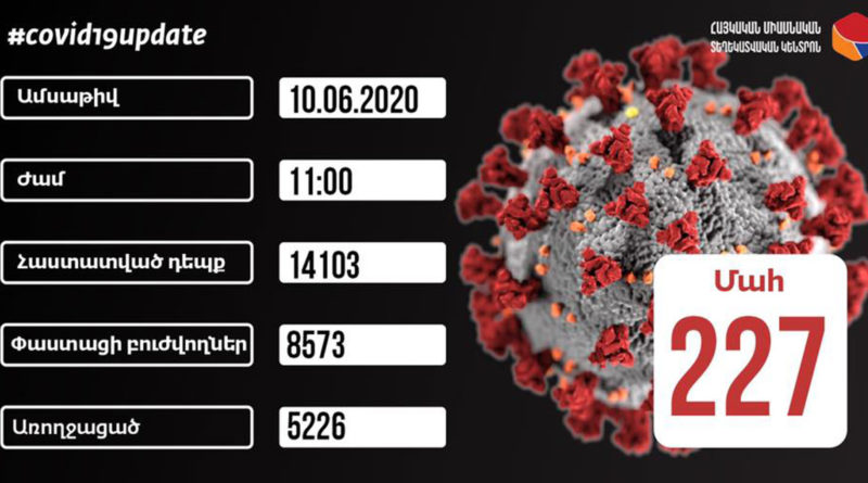 Հայկական միասնական տեղեկատվական կենտրոնի տվյալներով, արձանագրվել է մահվան 6 դեպք: Բուժառուները եղել են 71 (տղամարդ), 62 (կին), 54 (տղամարդ), 60 (կին), 58 (տղամարդ), 59 (կին), 66 (կին), 84 (տղամարդ), 93 (տղամարդ), 75 (տղամարդ) տարեկան: Բոլորն ունեցել են ուղեկցող քրոնիկական հիվանդություններ։