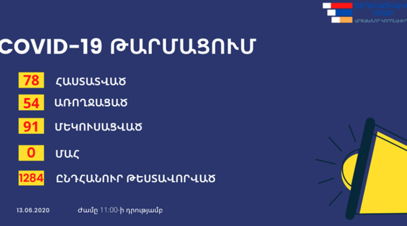 Միևնույն ժամանակ, նոր կորոնավիրուսի (COVID-19) վարակը հաղթահարել է ևս 11 քաղաքացի: Մեկուսացված է 91 անձ, ընդհանուր թեստավորումների քանակը 1284 է:
