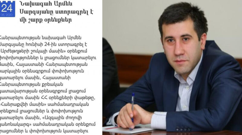 Նախագահ Արմեն Սարգսյանը «ինքնամոռաց աշխատում է»։ Գիշերվա կեսին ստորագրել է Սահմանադրական փոփոխությունները ստորագրելու (կամ ՍԴ ուղարկելու) լիազորությունից նախագահին (այսինքն՝ ինքն իրեն) զրկելու մասին օրինագծերը, որպեսզի առավոտյան «Պաշտոնական տեղեկագրում» հրապարակեն ու ուժի մեջ մտցնեն։