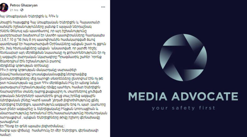 Պետրոս Ղազարյանի վերաբերմունքը եկեղեցու հանդեպ. «Մեդիապաշտպան»