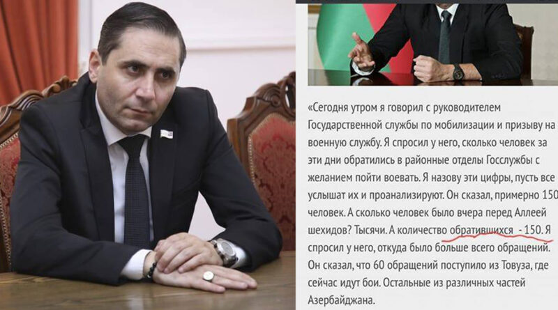 Իլհամ Ալիևը չափազանց վրդովված գանգատվեց այն փաստից, որ իրականում երեկվա իր ցեղակիցների կողմից իրականացրած բազմահազարանոց երթը՝ պատերազմի վերսկսելու պահանջով, իրականում կարճ ասած «դատարկախոսների» ընդվզում էր, քանզի այս օրերին կամավոր դառնալու ցանկություն հայտնել են ընդհամենը՝ 150 ադրբեջանցի։