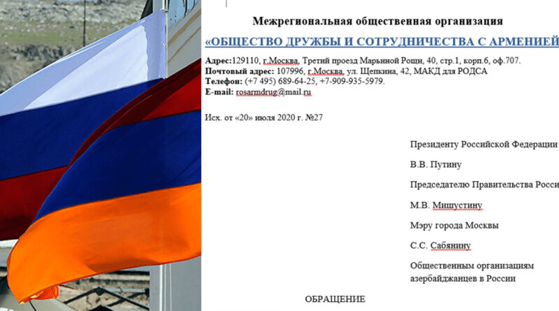 Межрегиональная общественная организация «Общество дружбы и сотрудничества с Арменией» выражает глубокую озабоченность отсутствием со стороны соответствующих государственных и городских структур должной реакции на факты запрета на торговлю армянскими товарами на Оптово-розничном продовольственном центре «Фуд Сити» у Калужского шоссе в Москве 17 июля 2020 года, принадлежавшего владельцам компании «Киевская площадь», выходцами из Азербайджана, а также на демонстративный проезд 19 июля с.г. автоколонны азербайджанцев по г. Воронежу, которые скандировали, сигналили, выбегали с флагами Республики Азербайджана на дорогу, громко транслировали родную музыку, тем самым парализовали движение и нарушали общественный порядок в центре миллионного города.