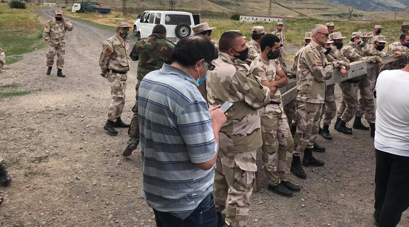«Կամուֆլյաժային արտահագուստով ու զենքով պահնորդական ծառայություն իրականացնող չնույնականացված ընկերությունն էլ իր հերթին է սրում իրավիճակը Ամուլսարի տարածք տանող ճանապարհին (տեսեք այստեղ)։