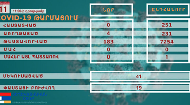 COVID-19 –ի ախտորոշմամբ 4 հիվանդ ապաքինվել է: