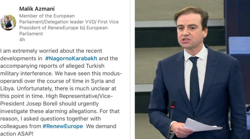 Եվրոպական խորհրդարանի ևս մեկ ազդեցիկ պատգամավոր, Renew Europe խմբակցության փոխնախագահ հոլանդացի Մալիկ Ազմանին անդրադարձել է պատերազմին։