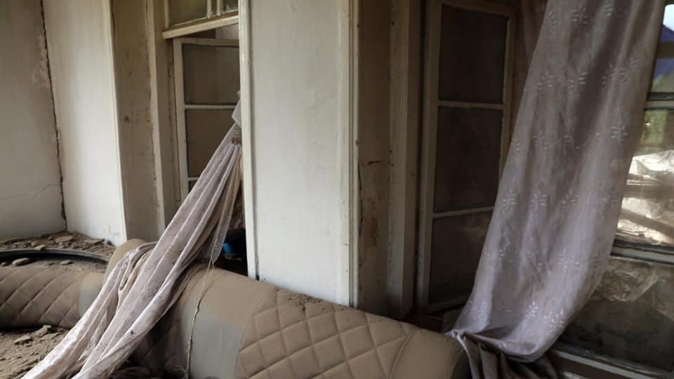 EXCLUSIVE. A civilian house, targeted by an Azerbaijani artillery shelling from multiple rocket launcher during the Azerbaijani aggression against NKR/Artsakh.