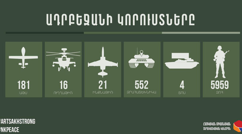 Ադրբեջան Տարածաշրջան Թշնամին վերջին տվյալներով կորցրել է ևս 1 ԱԹՍ, 6 զրահատեխնիկա, 1 ինքնաթիռ, 120 ասքյար 16.10.2020 0 min read Հակառակորդի կորուստները հոկտեմբերի 15-ի տվյալներով՝ խոցվել է ևս 1 աթս, 6 զրահատեխնիկա, 1 ինքնաթիռ, կա 120 զոհ: