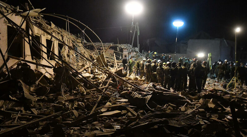 Հաջիևը նշել է նաև, որ փրկարարական գործողությունը շարունակվում է, և որ հայկական կողմից քաղաքի ուղղությամբ հրթիռային հարձակումների արդյունքում ավերվել է ավելի քան 20 տուն: