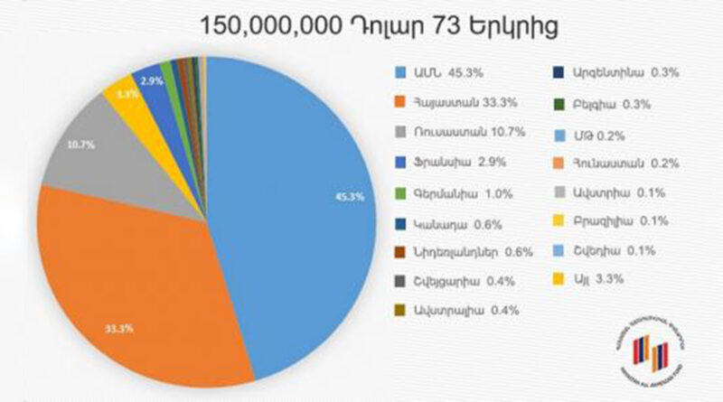 Արցախի համար հավաքված 150 մլն դոլարի 45 %-ը ԱՄՆ-ից է, 33 %-ը՝ ՀՀ-ից, 10 %-ը՝ ՌԴ-ից