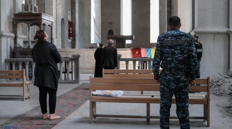 ՀՀ Կառավարության ֆեյսբուքյան էջում հրապարակվել են Շուշիի մայր տաճարից լուսանկարներ՝ «Աստված պահապան հայ զինվորին». զինվորի մայրը ոտաբոբիկ եկել էր եկեղեցի` օրհնելու իր պատրաստած գաթան» գրառմամբ։