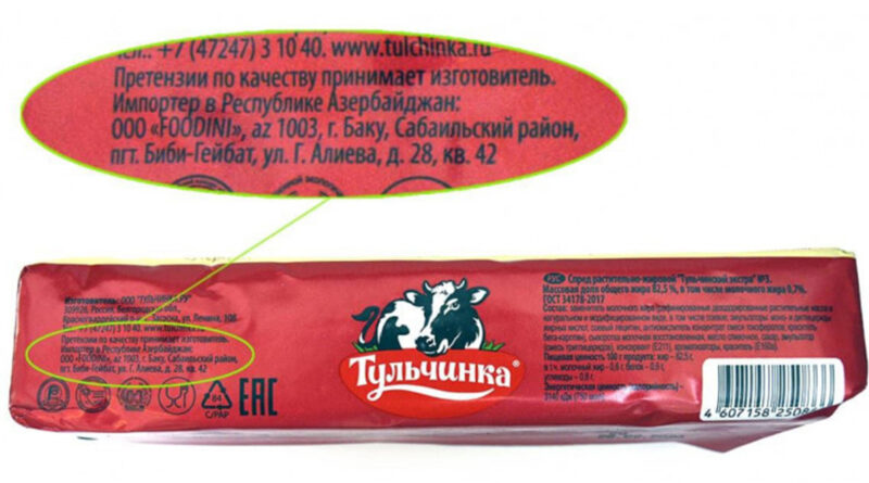 Այսպես. Ռուսաստանի Դաշնության Տուլչինկա ՍՊԸ-ի կողմից արտադրված 82,5 տոկոսանոց բուսայուղային սփրեդի խմբաքանակը նախատեսված է եղել հարևան երկիր ներմուծելու համար՝ ինչը վկայում է մակնշումը արտադրող կազմակերպության պիտակի վրա: Հայտնաբերված սփրեդի մի մասի վրա հայերեն մակնշում ընդհանրապես չի եղել, իսկ մի քանիսի վրա եղած հայերեն մակնշումից պարզ է դարձել, որ տվյալ խմբաքանակը Հայաստան է ներմուծվել «ԱրտԻմպորտ» ՍՊԸ-ի կողմից:
