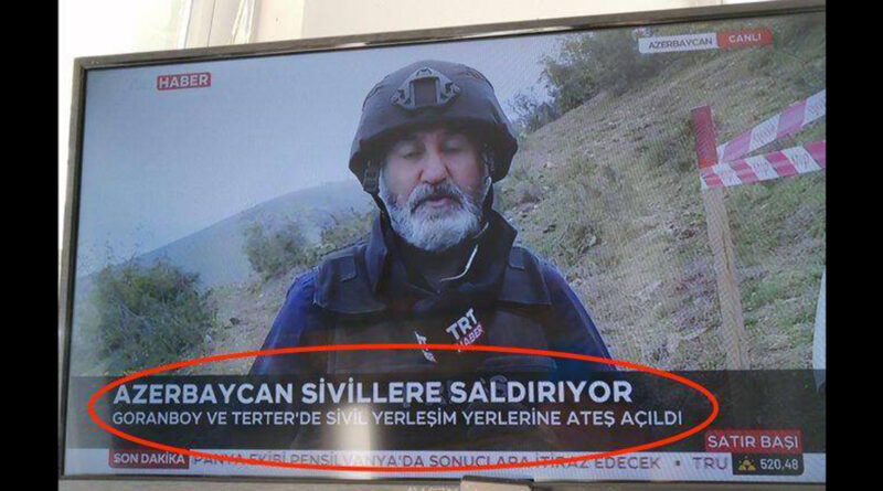 Ռեպորտաժի ժամանակ էկրանին հայտնված գլխագրում թուրքերեն նշված է եղել. «Ադրբեջանը հարձակվում է քաղաքացիական անձանց վրա» / Azerbaycan sivillere saldırıyor/: