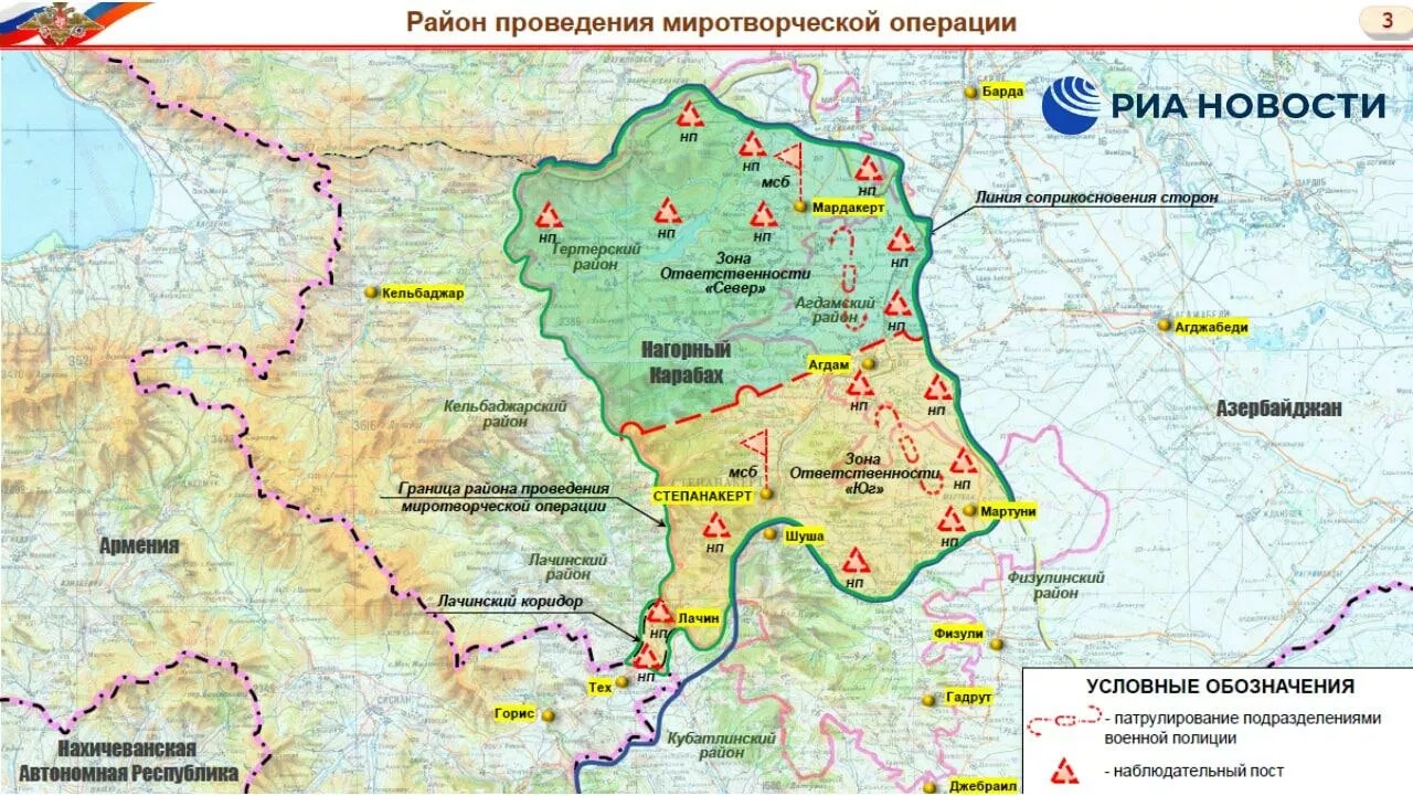 ՌԴ ՊՆ հրապարակել է Արցախում խաղաղապահ առաքելության տեղակայման քարտեզը