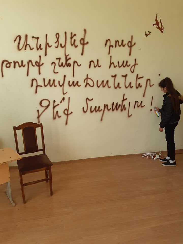 «Ահա այսպիսի գրառումներ թողեցին աշակերտները դպրոցի պատերին՝ հերոսների նկարները պոկելուց հետո և հրաժեշտ տվեցին հարազատ կրթօջախին»,- գրված է Արցախի Նոր Էրքեջի միջնակարդ դպրոցի ֆեյսբուքյան էջում՝ հրապարակված լուսանկարներին կից գրառման մեջ։