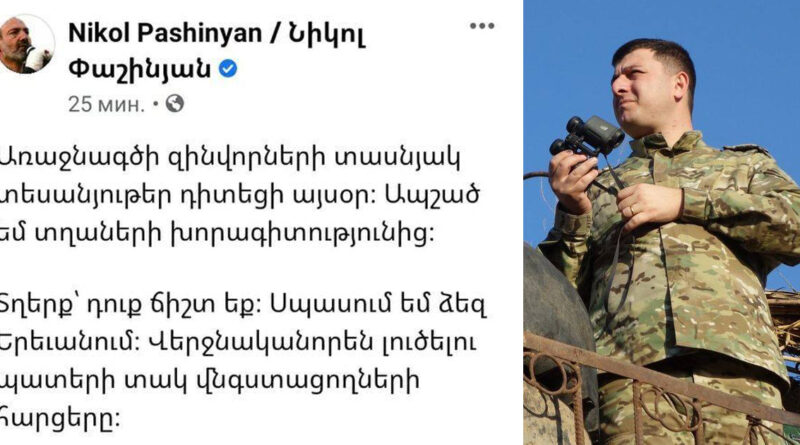 Օնիկ Գասպարյան,Դավիթ Տոնոյան, տեսա՞ք՝ ինչ եղավ։ Կամ տեսնո՞ւմ եք, թե ինչ է սա անում մեր բանակի, մեր սպայական ուսադիրների, պատվի և արժանապատվության հետ։