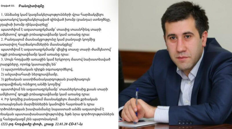 Ն. Փաշինյանի վերջին գրառումը պարունակում է ՀՀ քրօր 222 հոդվածով քրգործ հարուցելու բոլոր հիմքերը։ Բանդիտիզմով քրգործը պետք է հարուցվի անհապաղ։