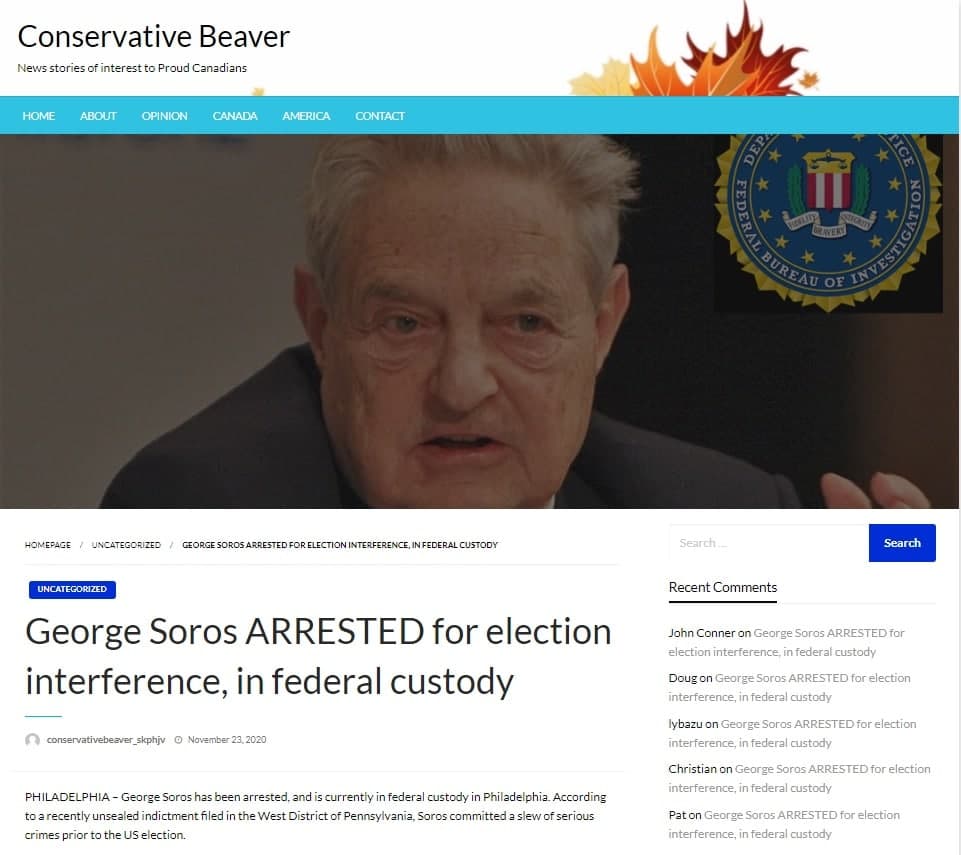 Ջորջ Սորոսը ձերբակալվել է և այս պահին Ֆիլադելֆիայում դաշնային իշխանությունների կալանքի տակ է: Այդ մասին նոյեմբերի 23-ին գրել է կանադական  Conservative Beaver պարբերականը։