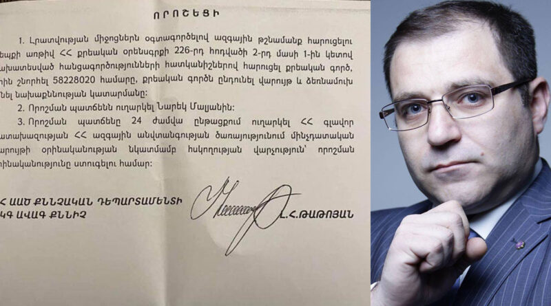 ԱԱԾ-ից ստացա այս հրաշալի նամակը, որով արձանագրվում է, որ ՀՀ պատմության մեջ առաջին անգամ քրեական գործ է հարուցվել կոռումպացված օլիգարխ Ջորջ Սորոսի շահառուի նկատմամբ այն էլ այնպիսի ծանր հանցագործության հատկանիշներով, ինչպիսին Սորոսի փողերով ազգային թշնամանք հարուցելն է: