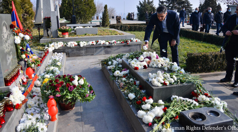 Մարդու իրավունքների պաշտպանը հարգանքի տուրք է մատուցել արցախյան պատերազմի նահատակների հիշատակին