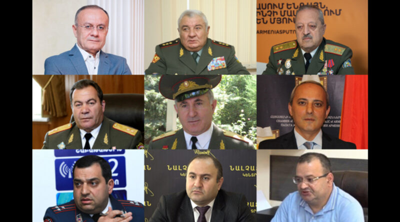 Փաշինյանի կառավարության հրաժարականի պահանջով հայտարարությամբ են հանդես եկել նաև ՀՀ Զինված ուժերի պահեստազորի և պաշտոնաթող 18 գեներալներ. գեներալ գնդապետներ Սեյրան Օհանյանը, Յուրի Խաչատուրովը, Մովսես Հակոբյանը, Միքայել Գրիգորյանը, գեներալ-լեյտենանտներ Հայկ Քոթանջյանը, Լևոն Մնացականյանը, Ալիկ Միրզաբեկյանը, Սամվել Կարապետյանը, գեներալ-մայորներ Արմեն Ղահրամանյանը, Վլադիկ Հովհաննիսյանը, Վյաչեսլավ Դանիելյանը, Վալերի Գրիգորյանը, Աշոտ Պետրոսյանը, գեներալ-լեյտենանտներ Արշավիր Ղարամյան, Էնրիկո Ապրիամովը, ՀՀ պաշտպանության նախարարի նախկին խորհրդական Դավիթ Ջամալյանը, ՊՆ զորակոչային ու զորահավաքային ավագ սպա Ռազմիկ Գևորգյանը, ՊՆ պահեստազորի գնդապետ:Էդուարդ Պետրոսյանը: