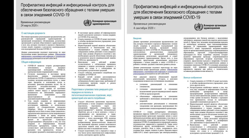 Ո՛չ նախորդ, ո՛չ էլ նոր ԱՀԿ առաջարկությունները չեն պահանջում դիահերձման արգելք և հուղարկավորություն փակ դագաղով, ավելին՝ երկրորդ փաստաթղթում ավելի հստակ պարզաբանվել է, թե ինչպես կարելի է հավուր պատշաճի և անվտանգ կազմակերպել թաղման արարողությունը։