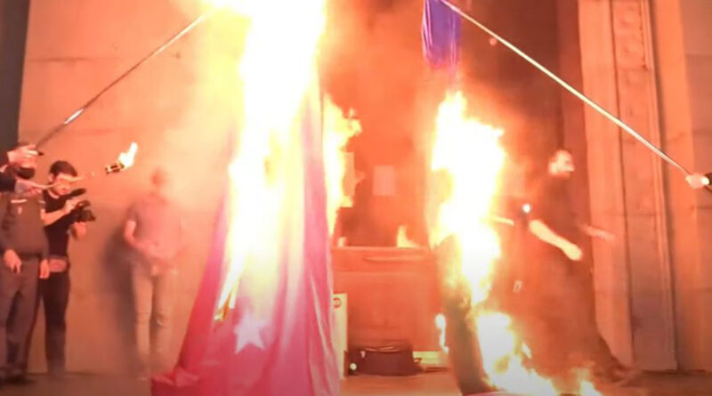 Ազատության հրապարակում այրեցին Թուրքիայի և Ադրբեջանի դրոշները (տեսանյութ)