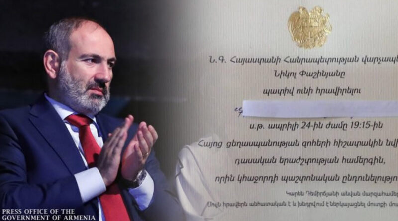 Արցախը հանձնած, 5000 տղաների գլուխը կերած թյուրիմացությունը ապրիլի 24-ի երեկոյան պաշտոնական ընդունելություն է կազմակերպում: Պատկերացնու՞մ եք՝ Մանսուրյանի Ռեքվիեմից հետո Մարզահամերգային համալիրի սրահում ընդունելություն է լինելու: Ինչի՞ առթիվ է ընդունելությունը, ի՞նչ են նշելու մասնակիցները, կոնյակի բաժակներով մոտենալու են վիժվածքին ու շնորհավորե՞ն ցեղասպան թուրքին պատերազմը պարտվելու առթիվ, իսկ միգուցե 5000 տղաների գլուխն ուտելու՞ առթիվ: