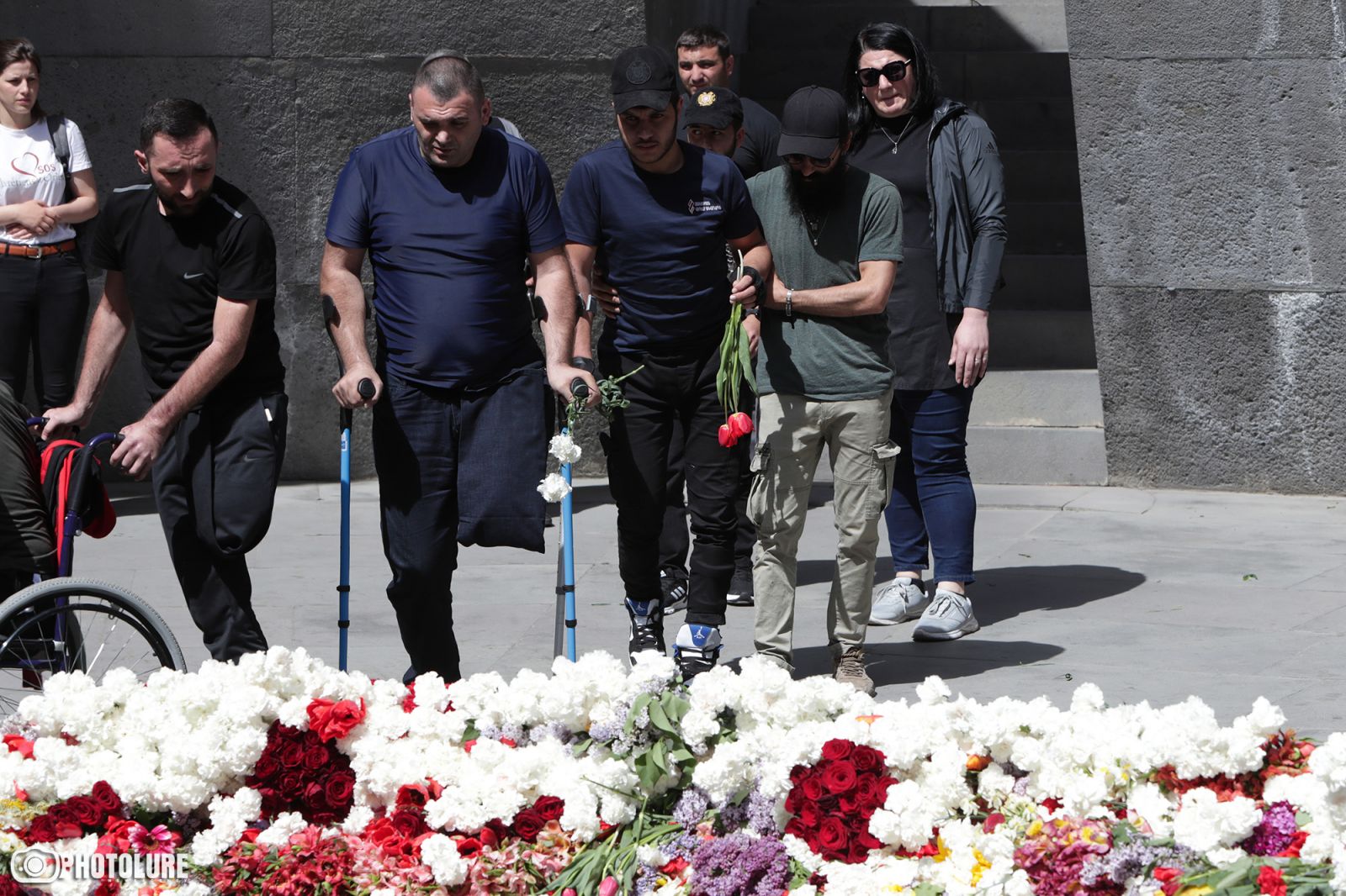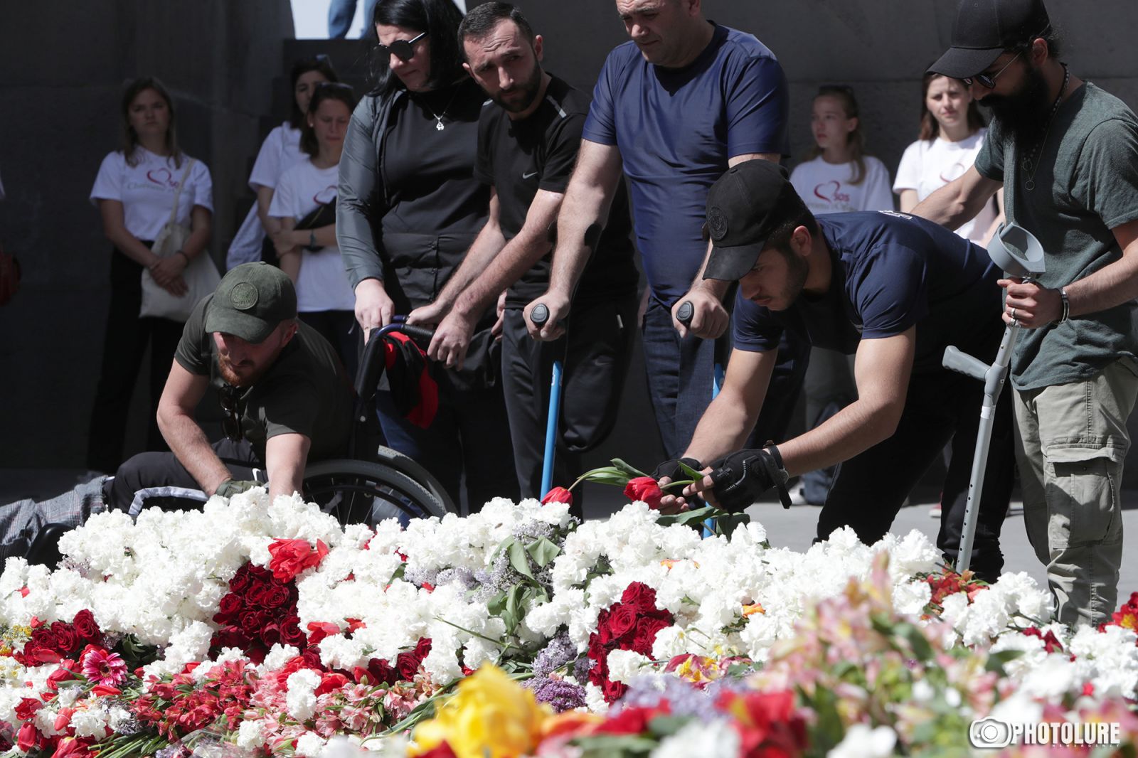Արցախի վերջին պատերազմում վիրավորված զինծառայողները, չնայած տեղաշարժման դժվարություններին, այցելել են 106 տարի առաջ Օսմանյան Թուրքիայի իրականացրած Հայոց ցեղասպանության զոհերի հիշատակը հավերժացնող Ծիծեռնակաբերդի հուշահամալիր։