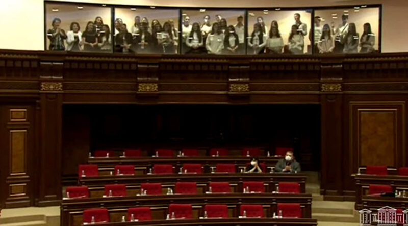 ԱԺ-ում ՄԻՊ զեկույցը պատգամավորների փոխարեն լսում են Գեղարքունիքի մարզի Վարդենիկ և Նորատուս համայնքների աշակերտներն ու ուսուցիչները, որոնք «Բաց դռներ» ծրագրի շրջանակում այցելել են խորհրդարան։