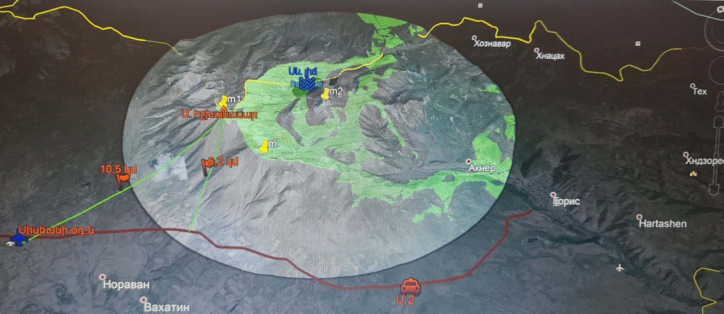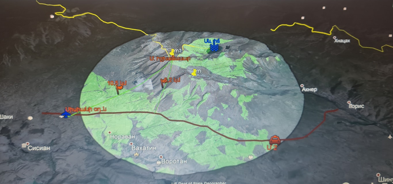 Որպեսզի վտանգի աստիճանը որոշ կենդանիների համար ընկալելի լինի նկարներում պատկերված է լեռնազանգվածի տարբեր կետերից անզեն աչքով 10 կմ շառավղով (կանաչ հատվածները) տեսանելիությունը։