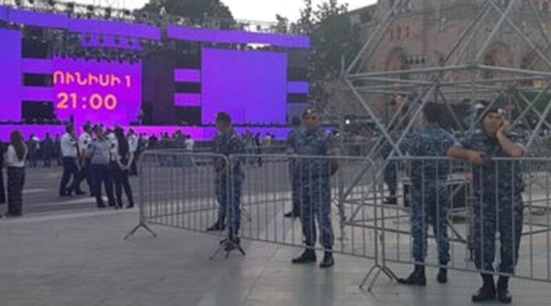 Ոստիկանությունը հունիսմեկյան համերգից մեկ ժամ առաջ մեծաթիվ ուժեր է կենտրոնացրել Հանրապետության հրապարակում։ News.am–ի թղթակիցը հաղորդում է, որ ոստիկանները շրջափակել են Հանրապետության հրապարակում տեղադրված մեծ բեմահարթակը։ Ոստիկանական ուժեր են կենտրոնացված նաև Կառավարության շենքի հարակից փողոցներում։