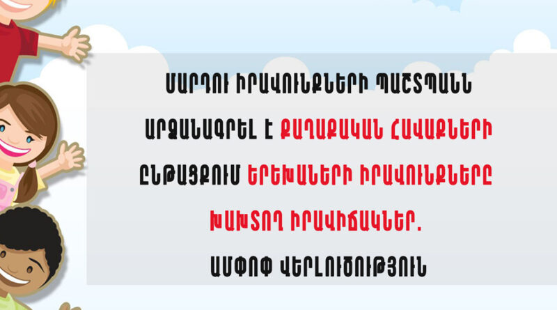 Պաշտպանն արձանագրում է, որ խաղաղ հավաքներին, այդ թվում՝ քաղաքական, երեխաների մասնակցության արգելք գոյություն չունի։ Կարևոր նշանակություն ունի խաղաղ հավաքներին կամ այլ զանգվածային միջոցառումներին երեխայի մասնակցության, երեխայի կարծիքի ազատ արտահայտման իրավունքների պատշաճ ապահովումը։