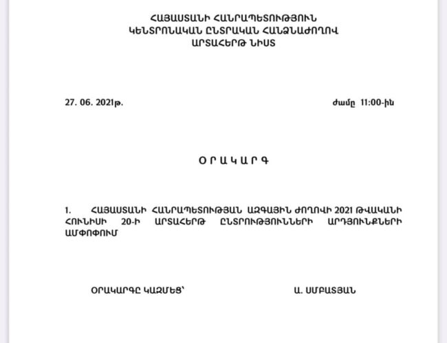 ԿԸՀ-ն հունիսի 27-ին կամփոփի ընտրության արդյունքները