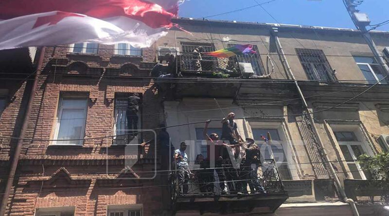 Ապա, 1-ին ալիքի տեղեկացմամբ, ցուցարարները ներխուժել են Թբիլիսիի Ախվլեդիանի փողոցում գտնվող «Թբիլիսի փրայդի» գրասենյակ: Նրանք գրասենյակ են մտել պատշգամբից, և հանել ԼԳԲՏ+ համայնքի դրոշները, պատռել են դրանք և նետել պատշգամբից ու այրել: